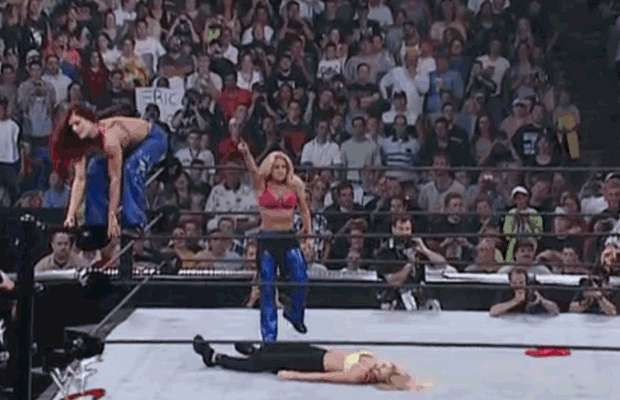 Y bueno, una de las anécdotas del evento, es el cómo Lita y Trish se salvan mutuamente la carrera, si caían ahí sin darse cuenta… mejor no imaginarlo.