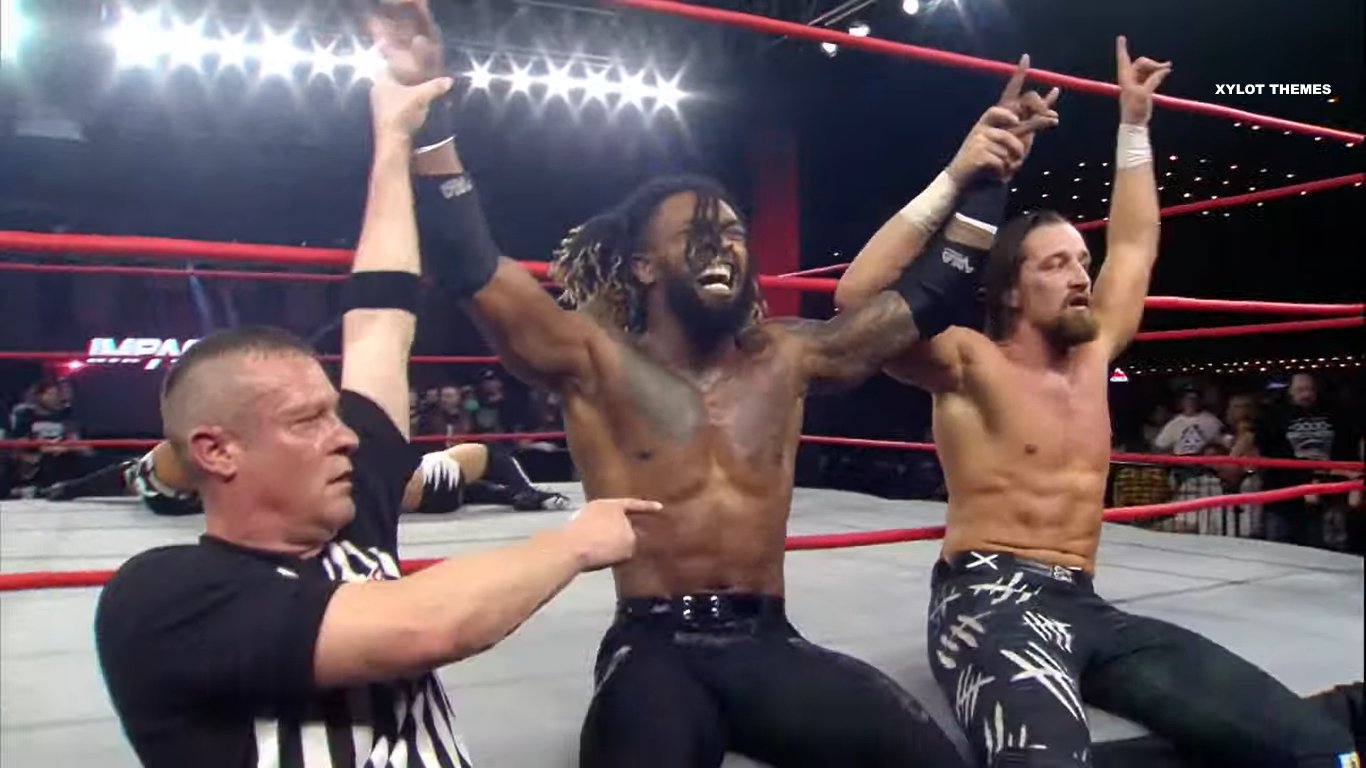 Revancha del duelo de hace algunas semanas en IMPACT Wrestling que acabó en polémica. Duelo igualado entre ambos equipos que terminó con el Art Of Finesse con ayuda de White que bloqueó a Sabin.