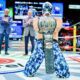Desenmascara a Místico y luego pone en su cuerpo una bandera de USA. Neon y MÁscara Dorada finalmente salen para espantar a los villanos.