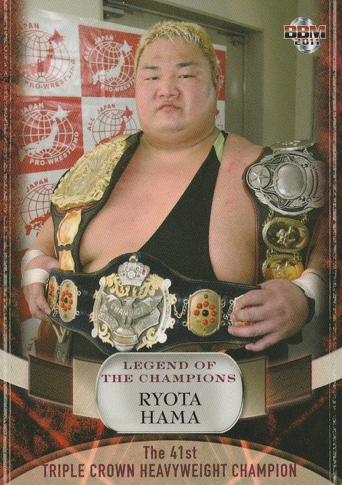 El caso más llamativo es el de Ryota Hama. Un ex peleador de sumo de 205 kilos y 1.75 mts, y tengo que decirlo, era increíblemente gordo. Hama se adaptó a la lucha libre y debutó en AJPW el 2008. Poco más de un año después obtuvo el Triple Crown, en el quizás más grande batacazo de la historia de la empresa.
