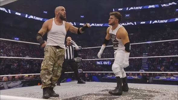 Espectacular es quedarse corto ante esta maravillosa lucha. Desde las entradas sabes que verás algo especial, y ambos interpretan sus papeles de gran forma, siendo MJF ese heel cabrón y metódico que ataca a Místico incluso antes de que de inicio oficialmente el combate, rompiéndole la máscara y haciéndolo sangrar en su cabeza.