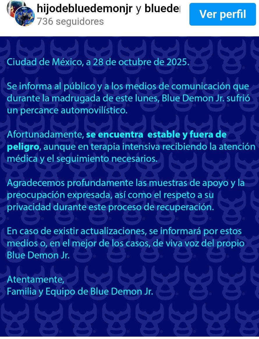 Blue Demon Jr. estable tras accidente