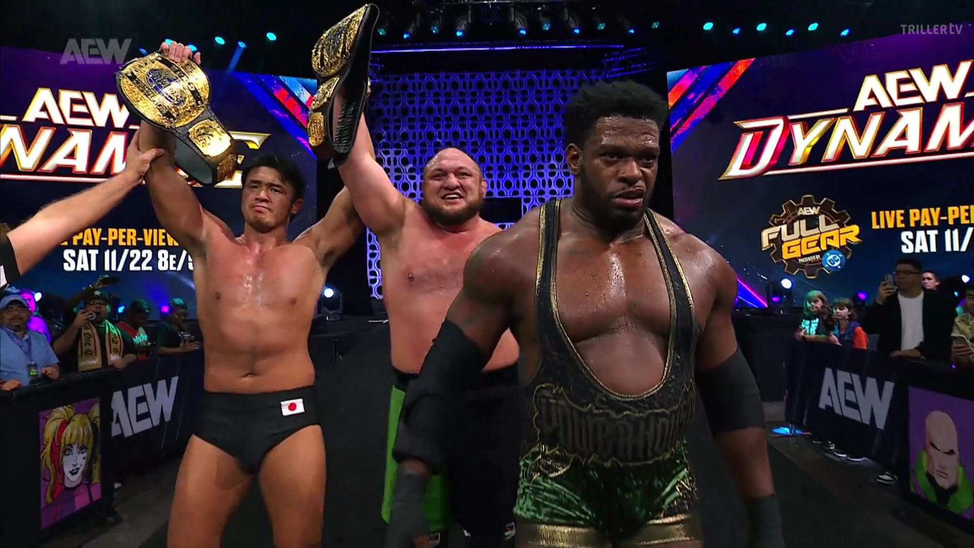 Vemos un repaso de lo sucedido la semana pasada en el final de Dynamite cuando Hangman se disfrazó de Tony Schiavone para atacar a The Opps. En el ring, Tony dice que tiene un gran anuncio, y es que en Full Gear tendremos al primer Campeón Nacional de AEW. Samoa Joe y los Opps lo interrumpen.